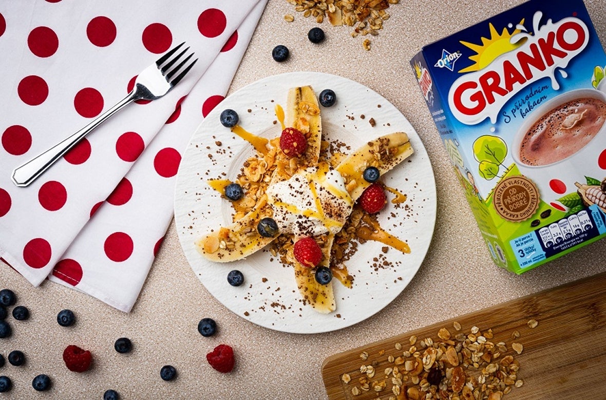 Granko chutná za tepla i za studena. Smíchejte 5 lžiček (13,5 g) Granka s 200 ml polotučného mléka a vychutnejte si lahodný kakaový nápoj tak, jak ho máte rádi. Více rychlých a hravých receptů na granko.cz/recepty.